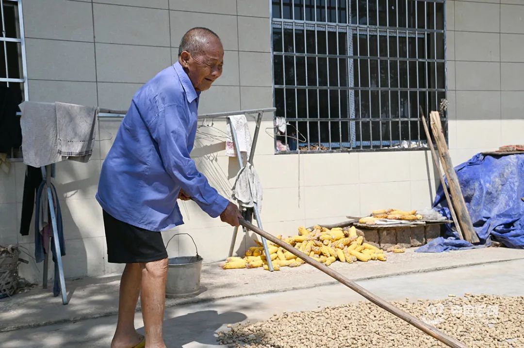 记者到达采访地点时,阳光照射在湖南涟源市斗笠山镇明镜井村明镜组92岁退役老兵刘仁堂的屋前,他一边剥玉米,一边和女儿、孙子开心地唱起《中国人民志愿军战歌》等歌曲。