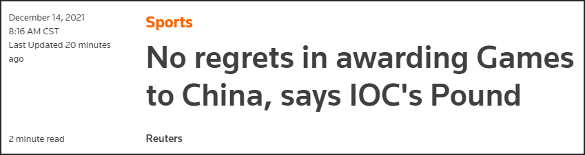 据路透社报道,国际奥委会高级委员、前副主席理查德·庞德在接受德国广播电台采访时表示,“从奥运会的角度来看,(如果)要一个可以组织和举办出色奥运会的东道国,中国绝对没有错。”“这是一个非常好的、非常有组织的国家。”