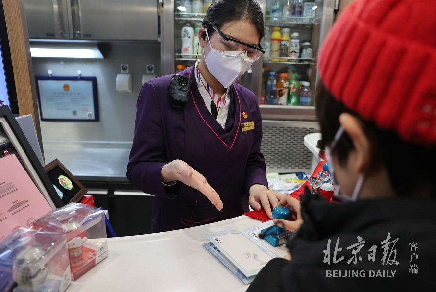 今天上午,记者登上G8883次列车,这趟列车8:50从北京北站发车;途经清河站、八达岭长城站;9:37抵达终点延庆站。主题邮局就设在列车5号车厢的服务台。在这里,乘客可以购买明信片、纪念封等邮品,并加盖纪念戳。更让人惊喜的是,5号车厢的壁板上还设置了一个移动邮筒,浅蓝底色外加雪花漫天的外表也尽显冬奥特色。