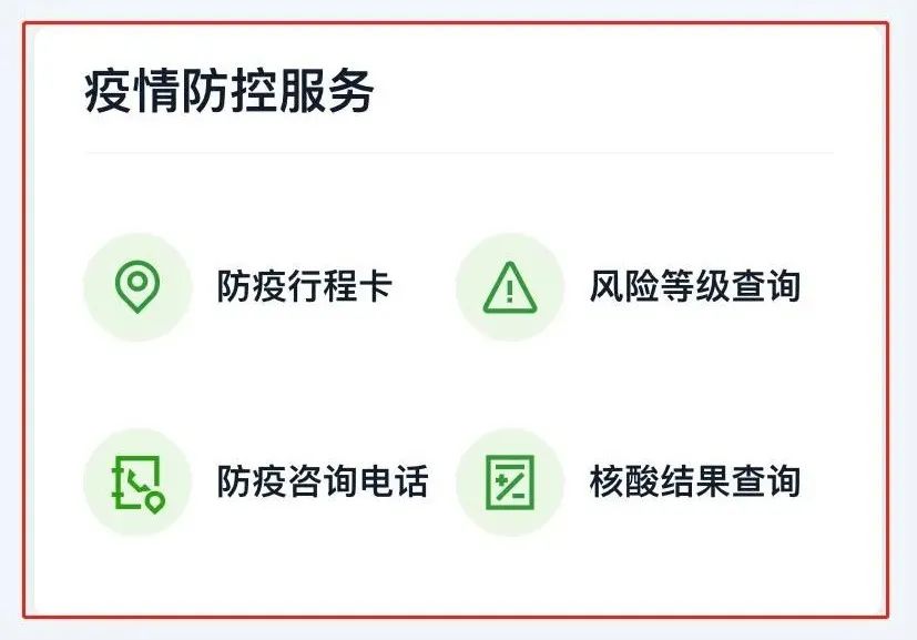 2. 拉到底部还有防疫行程卡、风险等级查询等常用疫情防控服务,供你不时之需。