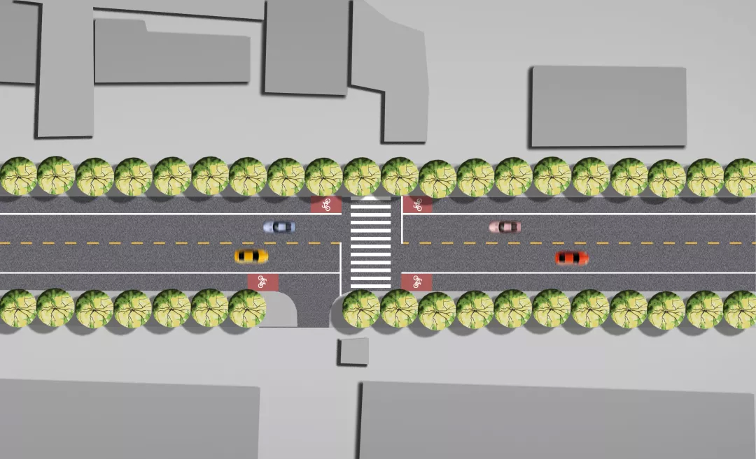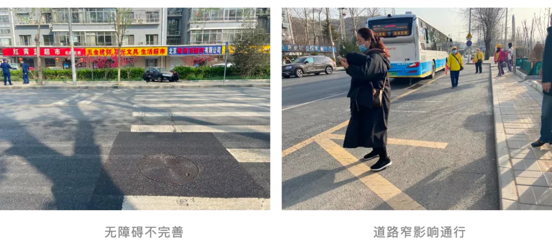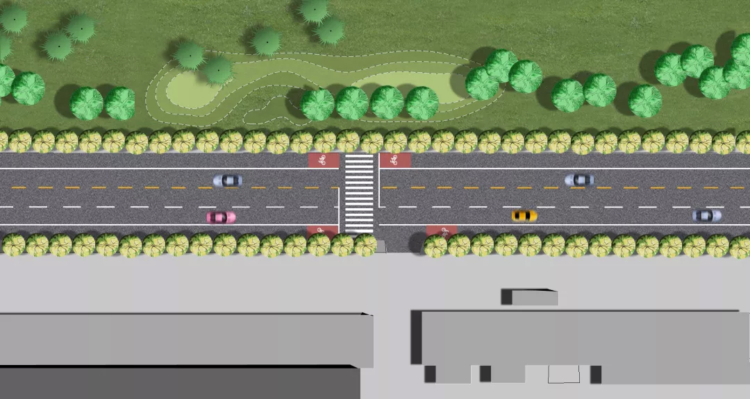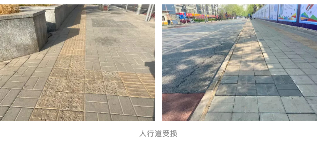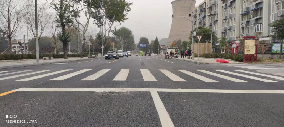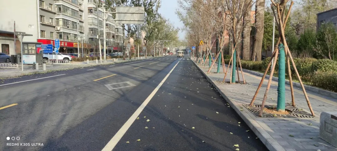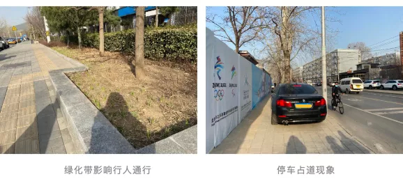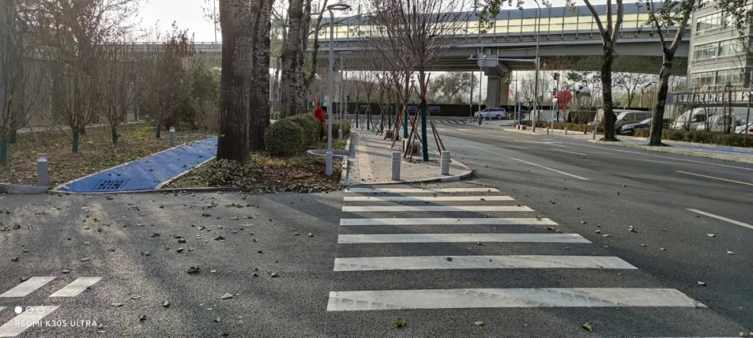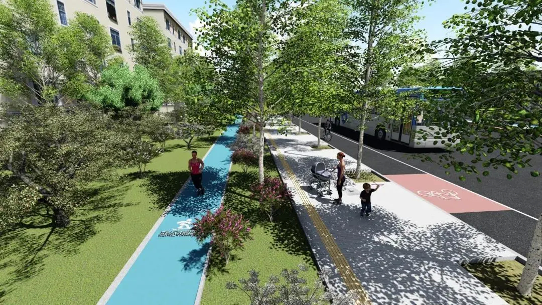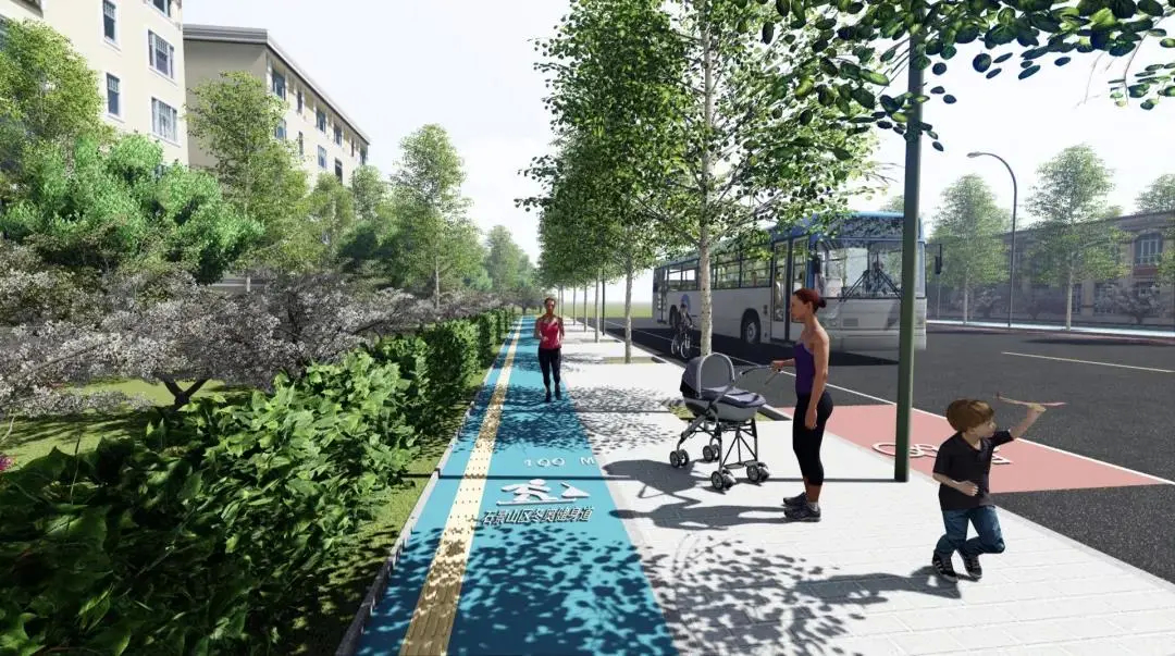 归整并翻建人行步道,宽度达到4.5米,绝对通行宽度不少于2.5米。完善道路无障碍设计,新建宽1.5米塑胶步道,与高井沟滨河道顺接呼应。人行步道和非机动车道取消停车位,增加人行步道阻车桩、非机动车道彩铺、违停抓拍监控和人行过街智慧斑马线,保障慢行系统路权。