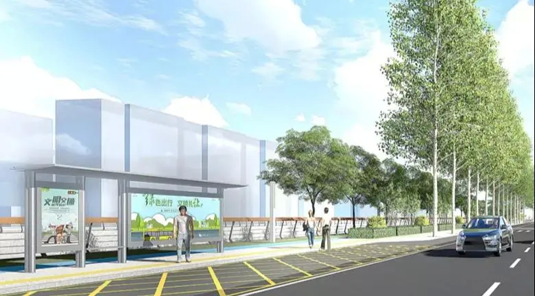 调整高井路口南公交港湾处人行道宽度,由1米调整至2.5米,公交港湾缩窄至2.5米、绿化缩窄1.5米。新建候车亭。