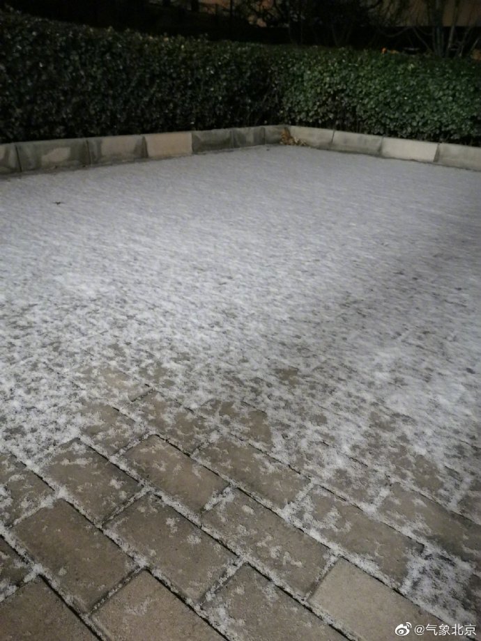 目前,门头沟气象局院内已有一层薄薄的雪,你家早晨见白了吗?