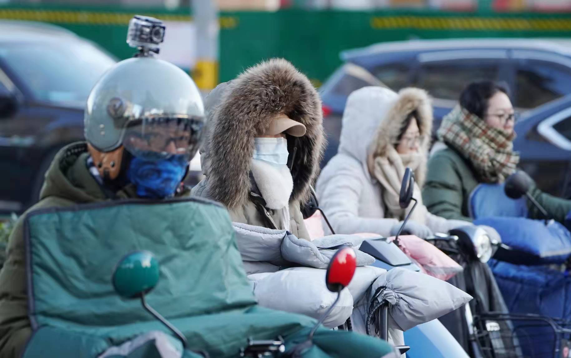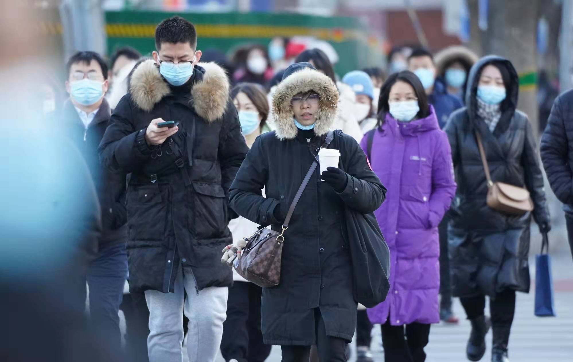 今天早上,北京气温骤降,海淀区成府路,上班的人们把自己捂的严严实实。