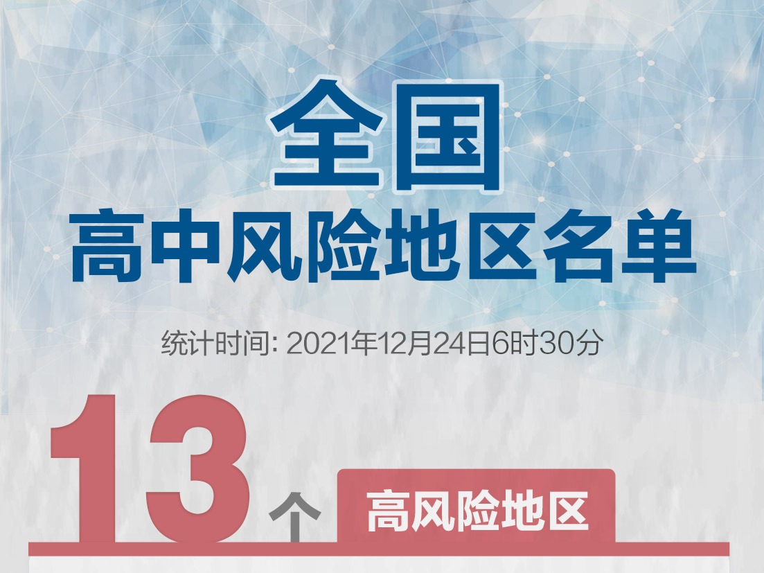 据国务院客户端小程序最新统计情况,全国现有高风险地区13个、中风险地区112个。详情>>
