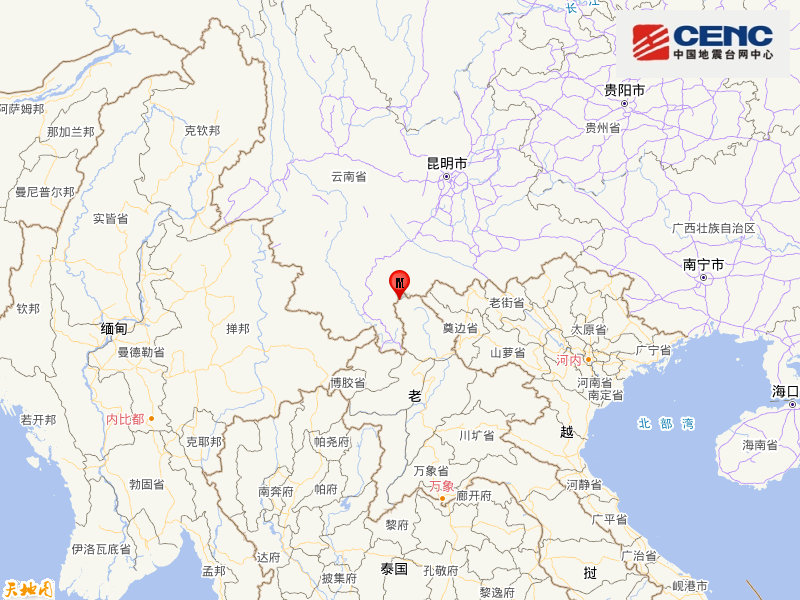中国地震台网正式测定:12月24日21时43分在老挝(北纬22.33度,东经101.69度)发生6.0级地震,震源深度15千米。