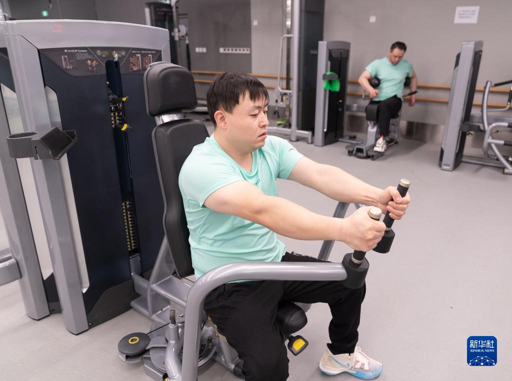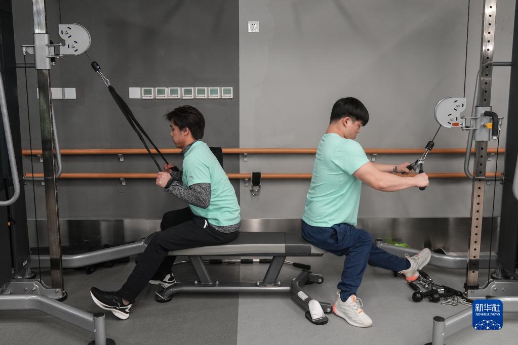 12月23日,在北京顺义中国残疾人体育运动管理中心的国家残疾人冰上运动比赛训练馆,中国残奥冰球队队员何依航在做体能训练。新华社记者 彭子洋 摄