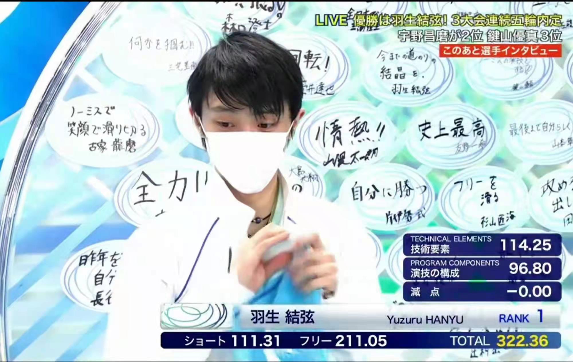 12月26日晚,全日本花样滑冰锦标赛暨北京冬奥会选拔赛在埼玉超级体育馆举行,在男子单人自由滑比赛中,羽生结弦开场既用上了阿克塞尔跳(4A)的动作。虽然最终他以双足落地完成这个动作,但是依然以自由滑211.05分,总分322.36分的成绩排名第一,顺利拿到北京冬奥会参赛资格。