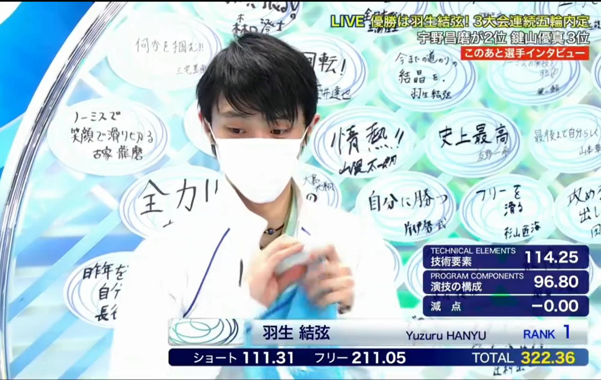 凭借本次比赛的成绩,羽生结弦也毫无悬念地拿到了北京冬奥会的参赛资格。对此,他说:“我会为在比赛中发挥出最佳表现而好好努力,我会加油的。”这是羽生结弦第三次征战冬奥会,如果夺冠将实现冬奥会花样滑冰男单三连冠,创造前无古人的历史。