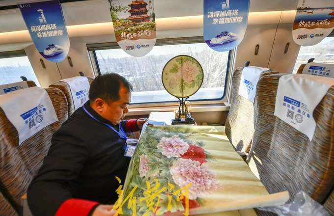 12月26日,鲁南高铁(日兰)曲阜至菏泽至庄寨段开通运营,首发列车上分别设置了两节文化旅游推广专属车厢,菏泽和济宁两个市的非遗项目在车厢内设置展区,通过文化项目向乘客推介菏泽、济宁两地的旅游项目。