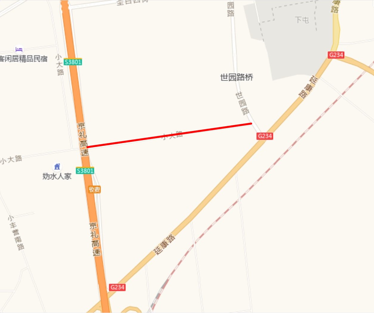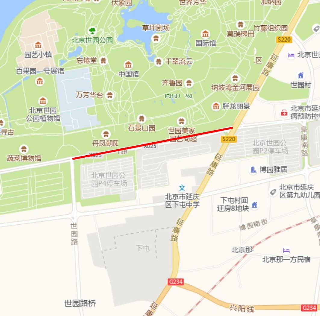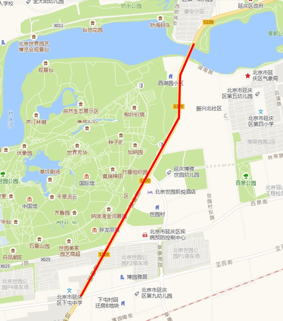 起点位于延康路,终点位于世园路,全长1.1公里。