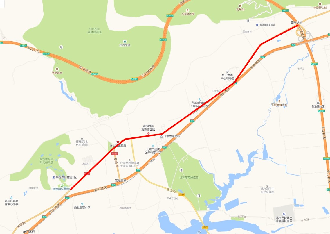 起点位于辉煌松山度假村,终点位于京礼高速,全长10.7公里。