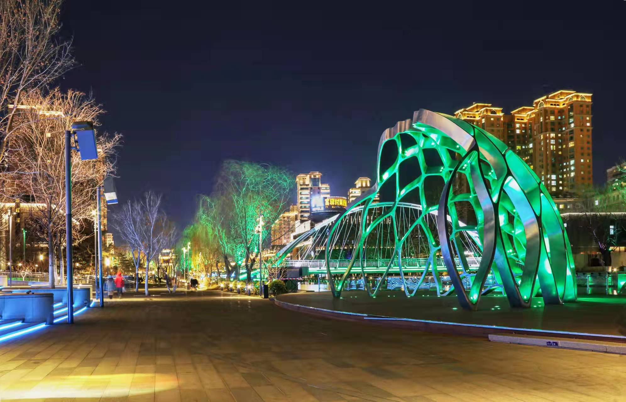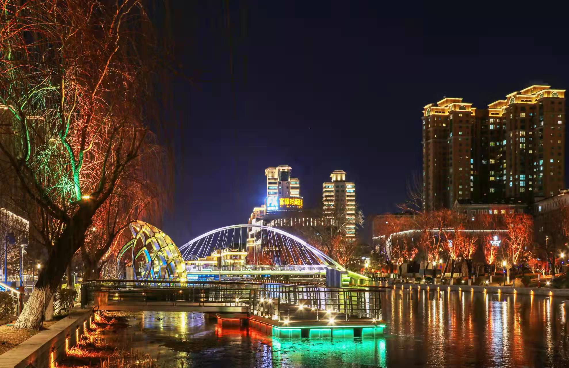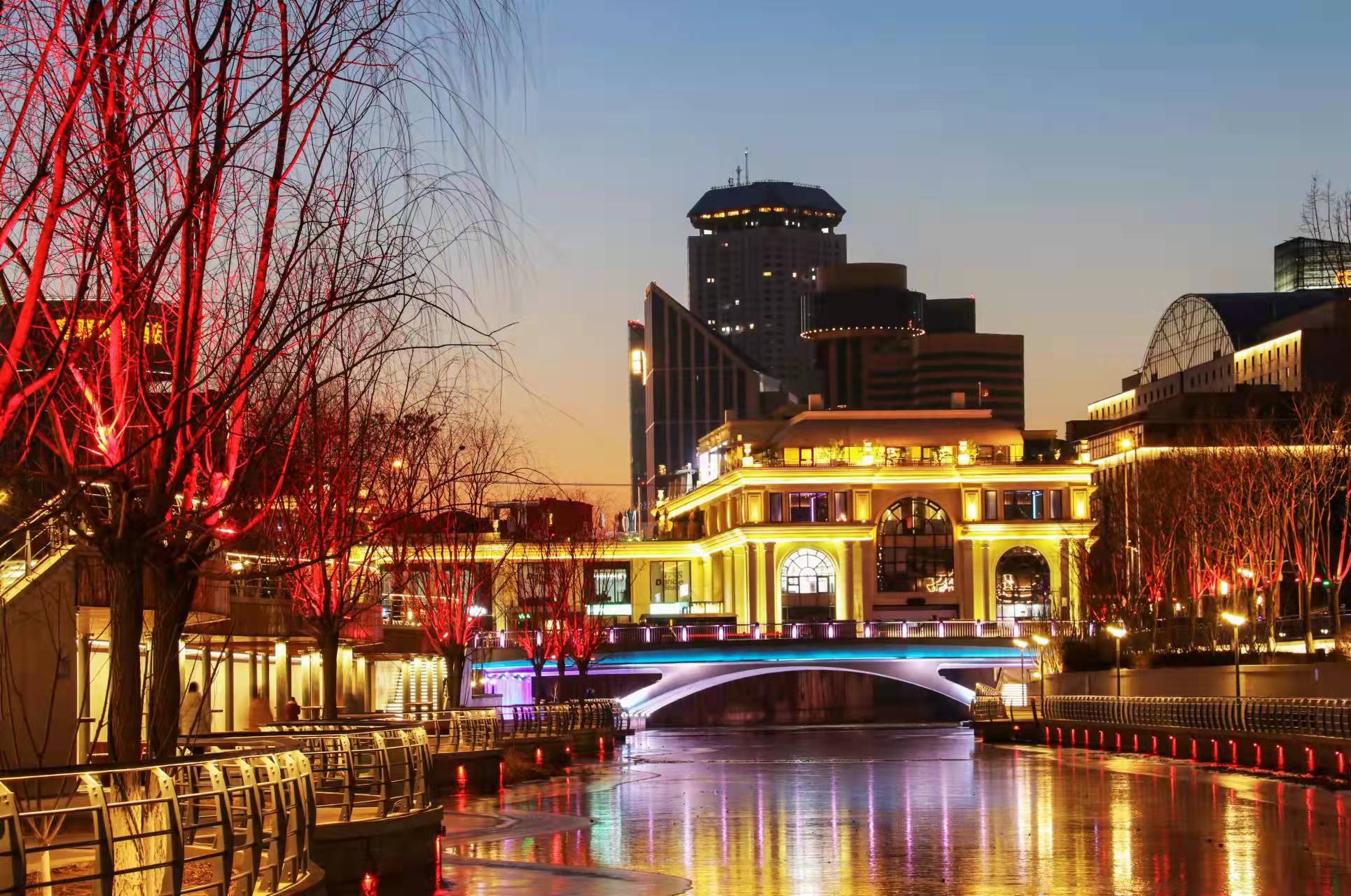 夜晚,北京亮马河被五颜六色的灯光点亮了,仿佛整片天空都在尽显着北京亮马河的流光溢彩。在灯光的“淡妆浓抹”间,桥梁、楼宇与城市绘制出了一幅绚烂的画卷。北京亮马河的夜,是何等迷人啊!