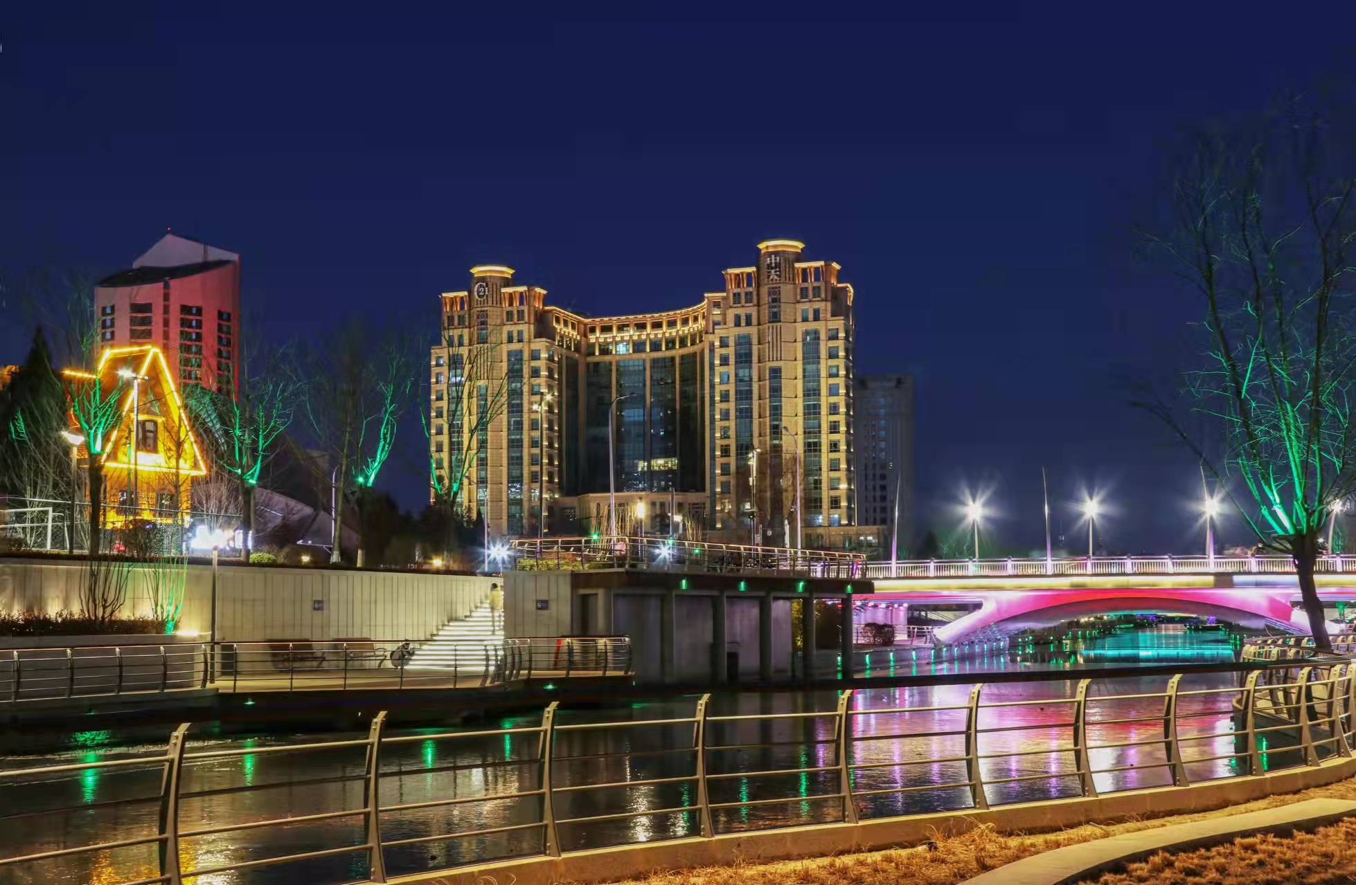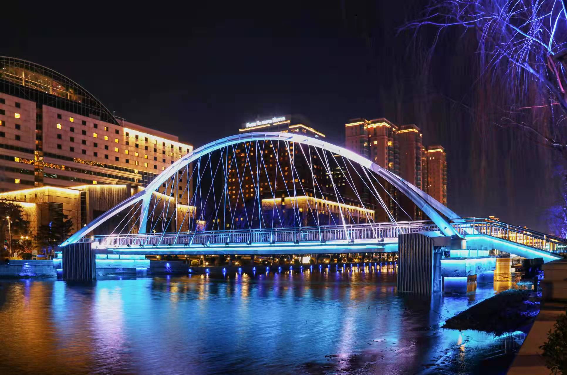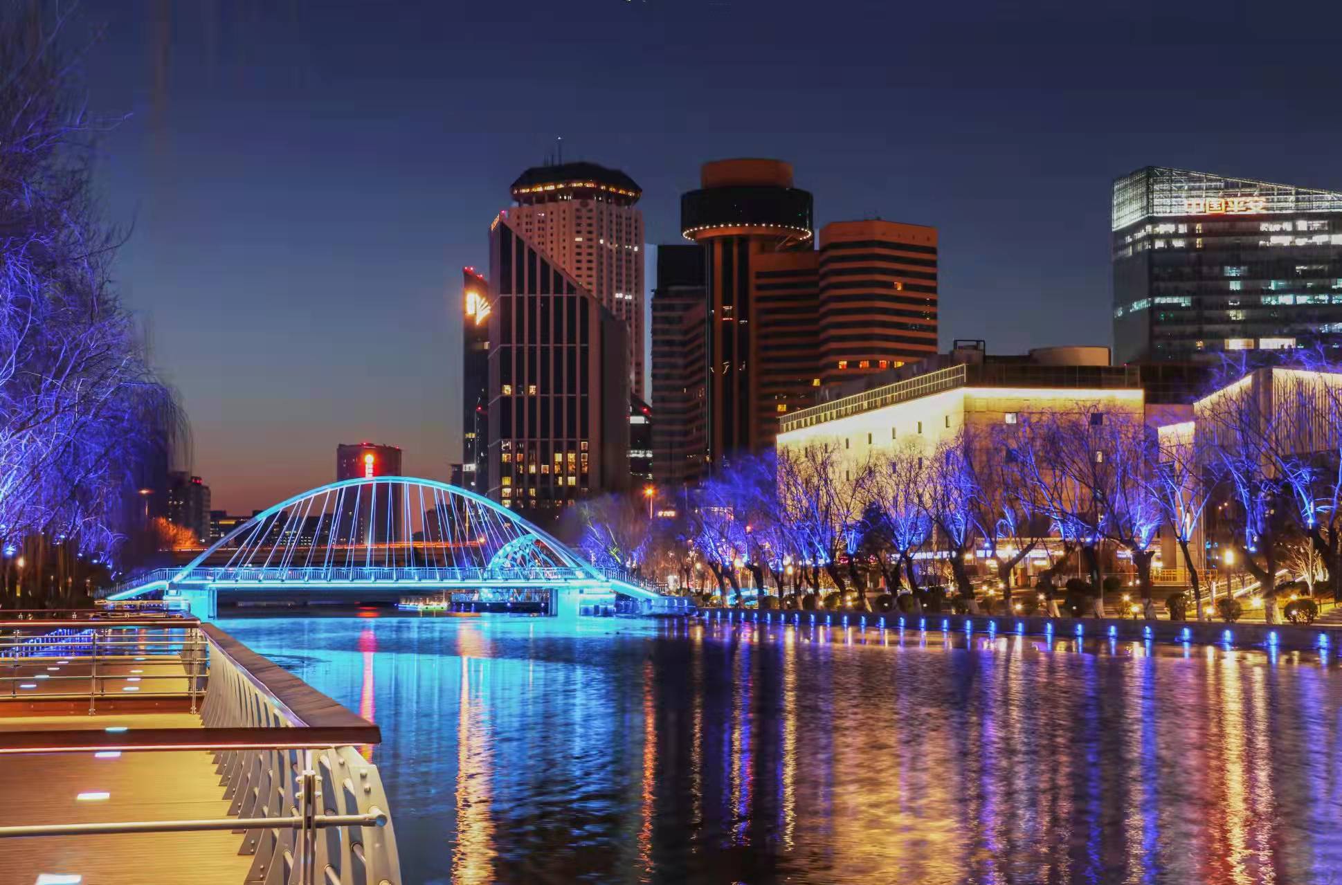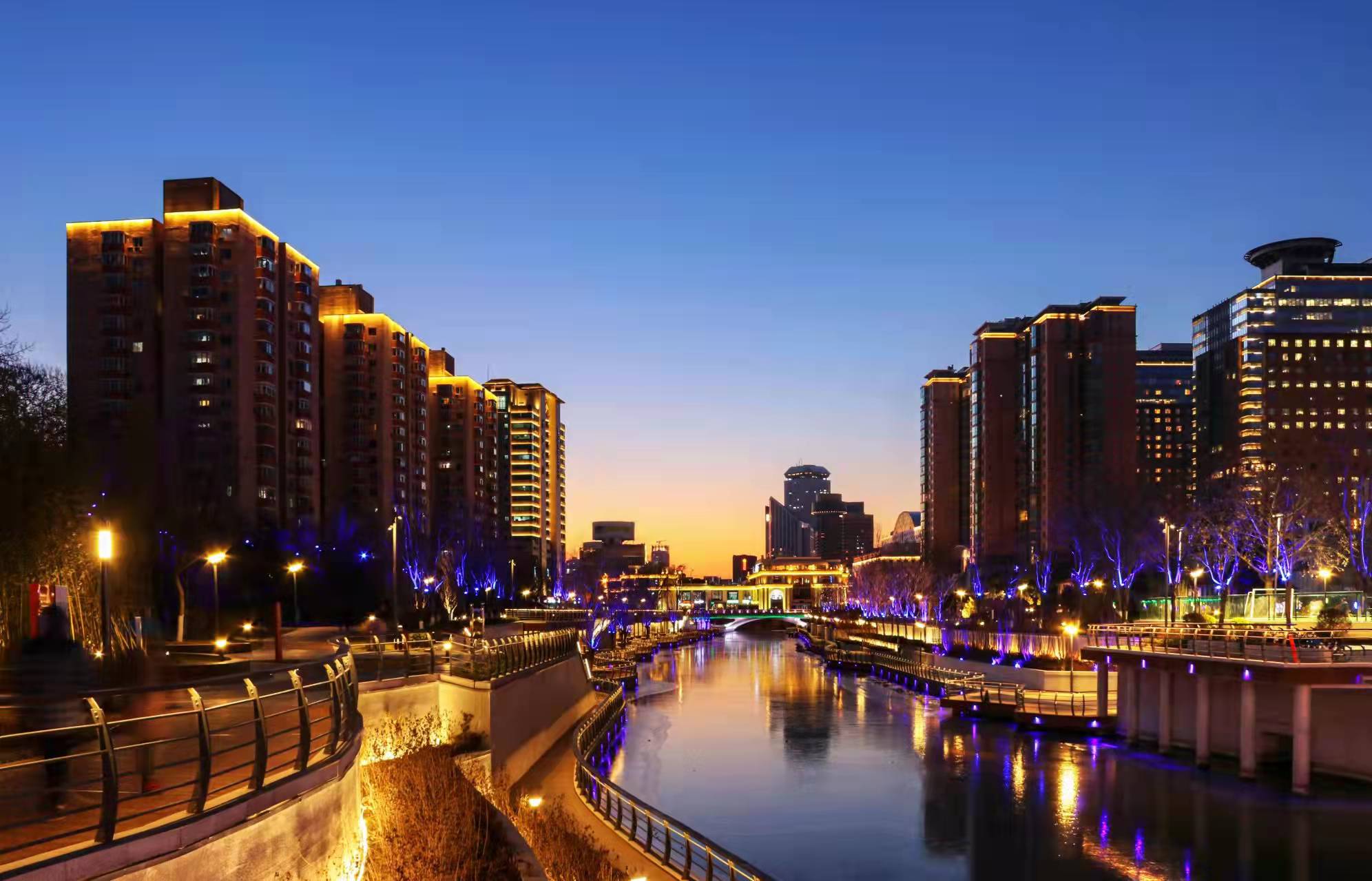 夜晚,北京亮马河被五颜六色的灯光点亮了,仿佛整片天空都在尽显着北京亮马河的流光溢彩。在灯光的“淡妆浓抹”间,桥梁、楼宇与城市绘制出了一幅绚烂的画卷。北京亮马河的夜,是何等迷人啊!