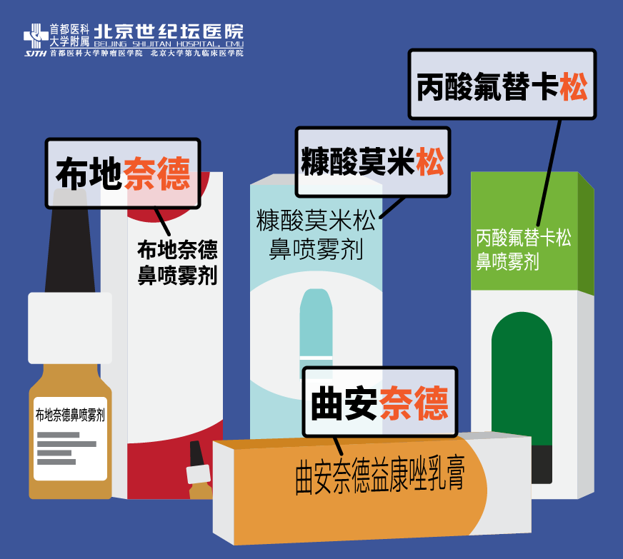 激素有很多种类,当看到药品的通用名叫“XX松”,“XX奈德”时,这就是激素。它有不同类型的药物剂型,口服的片剂、涂抹的膏剂、喷雾或吸入的液体剂、静脉注射的粉剂等,对于鼻炎,局部应用于鼻腔的喷雾型激素最为常用。