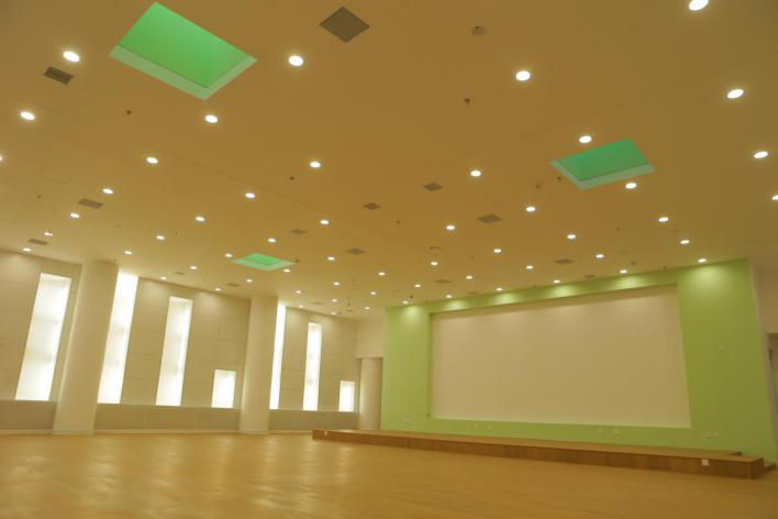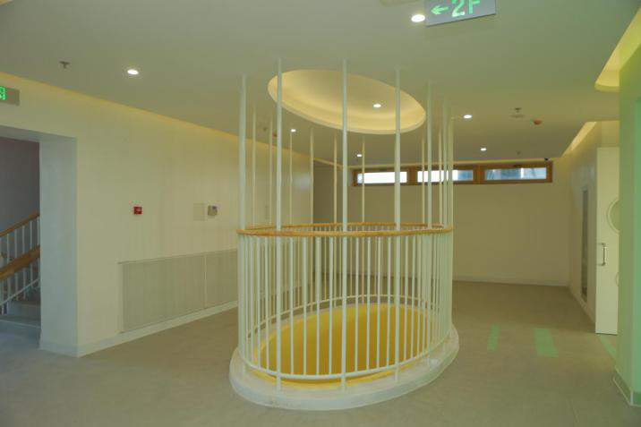 项目室内、外设计均从幼儿视角出发,以灵动多变的形式进行户内布局设施,在建筑内设有风雨观察窗,在主楼内部除了标准的活动室设置外,还考虑了美术、图书、科技探究、烘焙等专业教室,多元化培养幼儿兴趣。