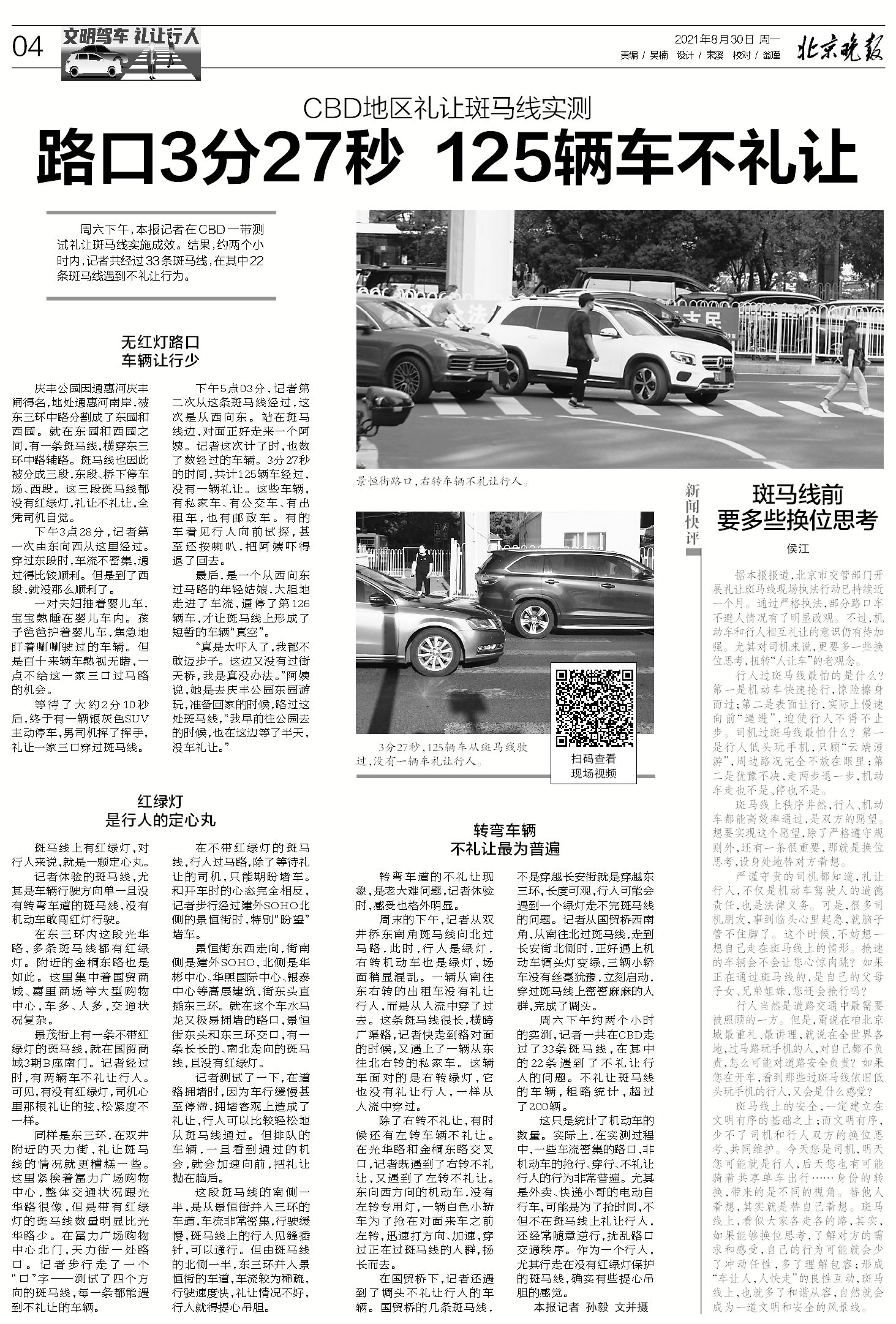 “开车时礼让行人,走路时也会被其他车辆礼让,都是相互的。”“就算没有红绿灯或监控探头,咱也要自觉,稍微停会儿能方便很多人。”几个月的持续推动,不少司机从心态和行为上都在发生转变。“车让人,人也要守规矩,过马路别磨蹭,别看手机,不要闯红灯。”越来越多的行人也进一步产生了过马路的认知与期待。