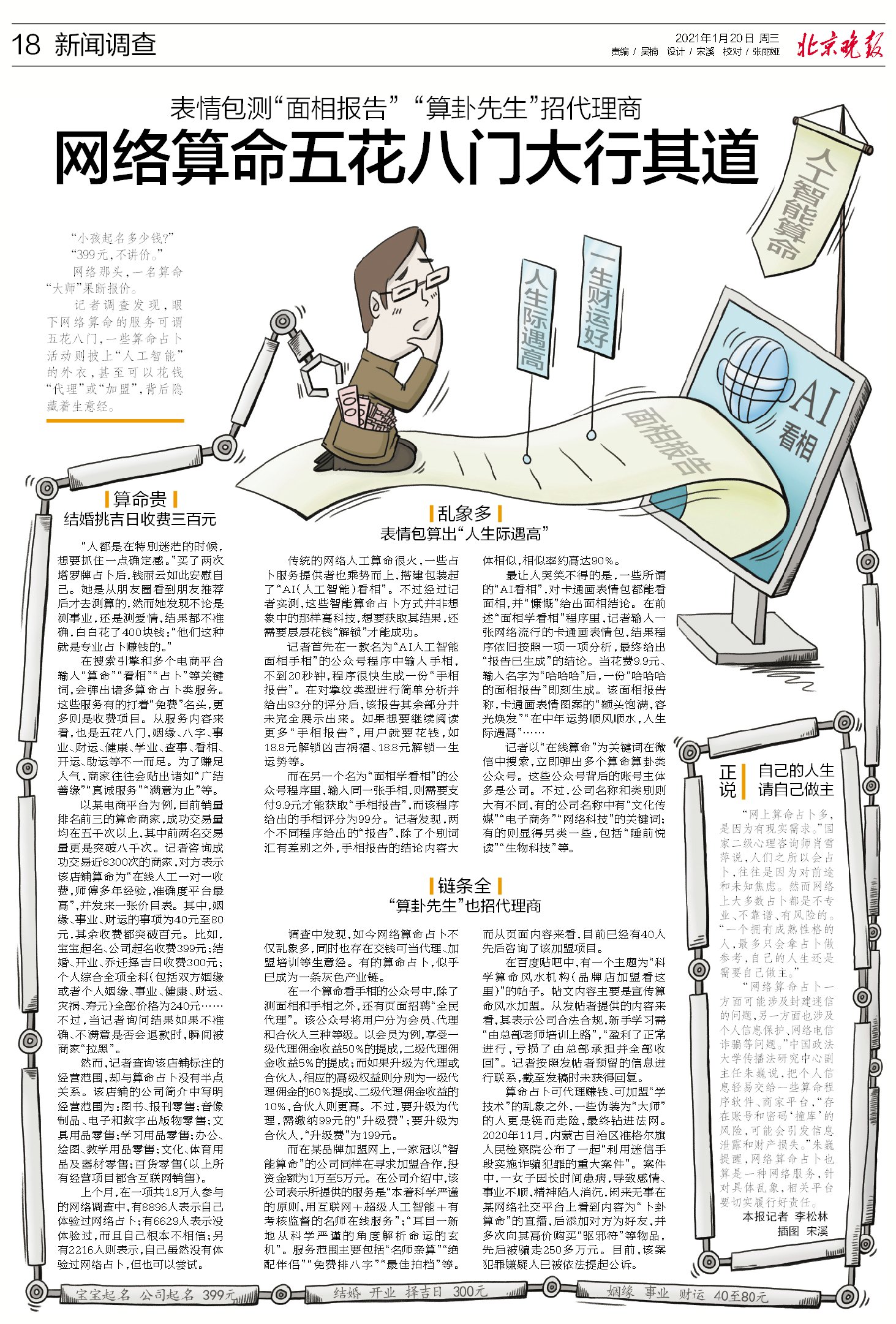 在网上被帅哥美女搭讪,以为美好姻缘正在招手?殊不知正逐步滑向“杀猪盘”骗局的深渊;手相面相生辰八字,利用人们的迷茫焦虑心理,就连算命占卜也可隔着屏幕花式骗钱;学理财学配音学剪辑,种种前景大好的课程统统不要钱。奔着“薅羊毛”加群打卡,却被引导付费购买高价课;只要会演,“名医名师”全靠包装,吃播喝播情感主播,都为引流带货……