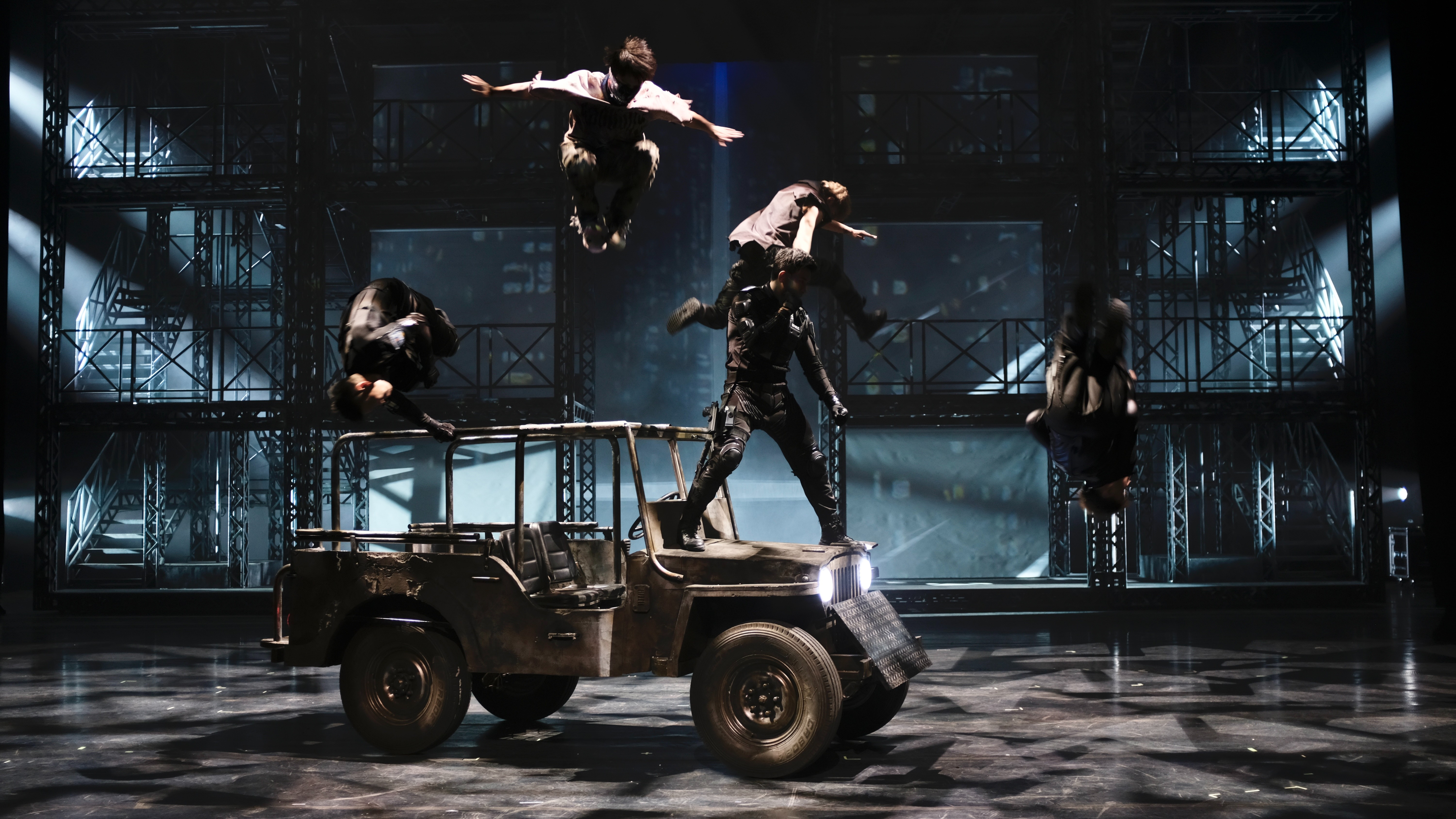 五十余位曾经荣获金奖的杂技演员担纲节目的主力表演阵容,无论是剧中正面人物和男主角“何平”的扮演者张鹏以及反面一号人物“匪首”的扮演者刘群,还是基站抢修工人的扮演者邢运伟、人质——街舞女郎扮演者周思宇、落水人的扮演者宋宇戈等,都在剧中奉献了精彩的表演。熟悉杂技的观众可以在剧中看到背顶对叉、地圈、杆技、抖空竹、顶碗、绸吊等很多杂技金奖节目的影子,而这些高超的技术技巧,被巧妙地融入剧情当中,既让观众因视觉受到冲击而惊叹,又因心灵受到震撼而感动。尤其当“警二代”何秒秒奋力将落水女孩托举出水,自己却因气力耗尽而沉入水底时,创新性地采用了“绸吊”这一男女高空杂技技巧来表现水下救人场景。黄宏和李任两位编导和中国杂技团总工程师王建民共同研发的特殊道具,在多媒体和灯光舞美的配合下,实现了在舞台上仿水中悬浮的特效,让人既感动又赞叹。