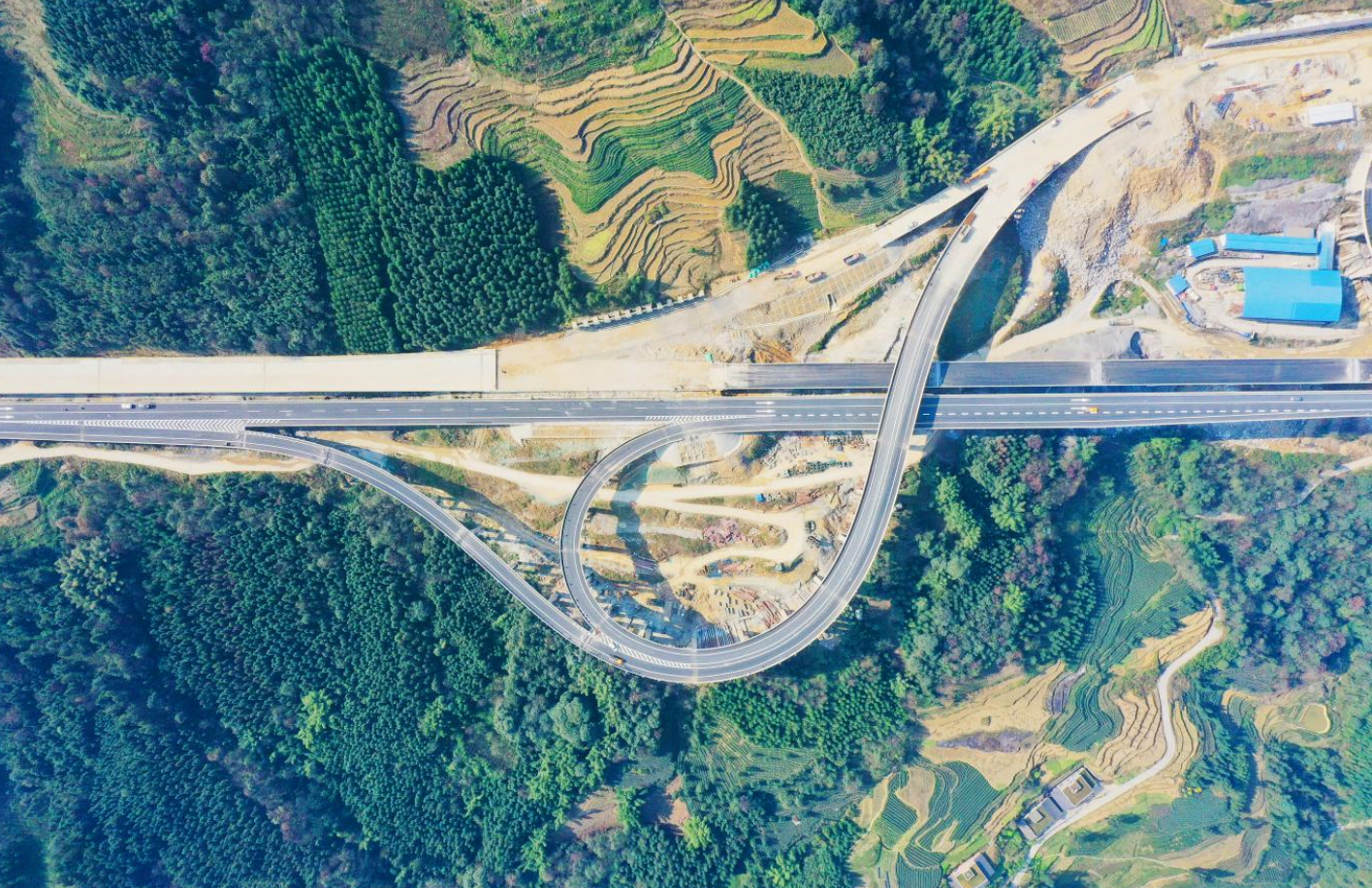 在位于筠连县筠连镇德胜村的崇山峻岭间,一条雄伟的“巨龙”盘踞其中,它就是西部洞群互通,这是宜彝高速公路四川段的最后一个重要节点。