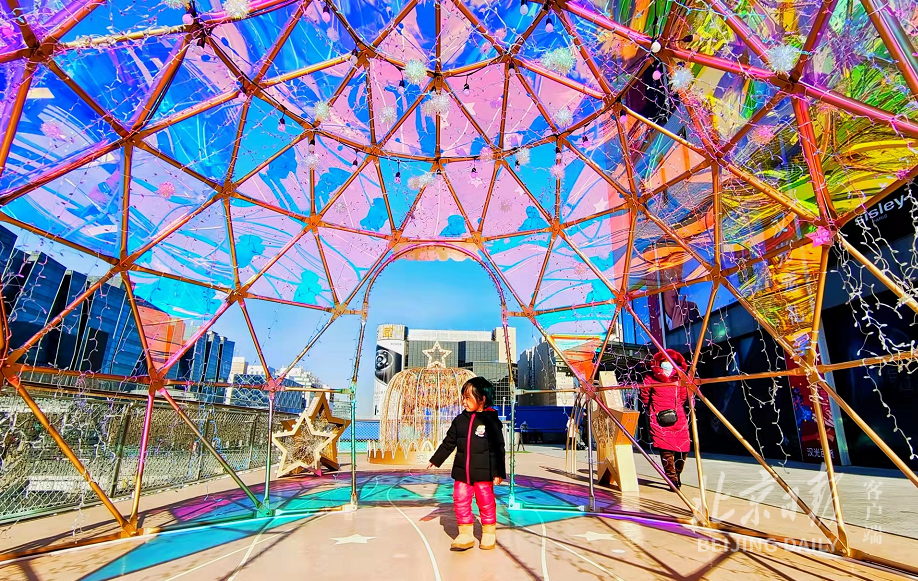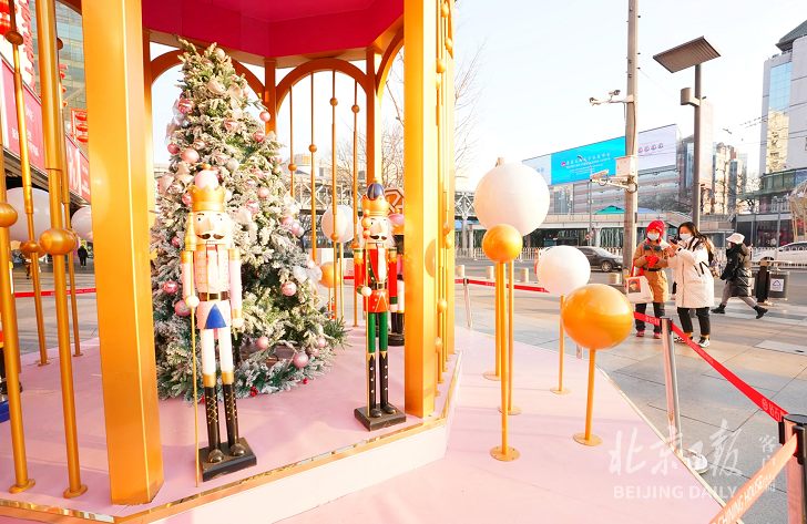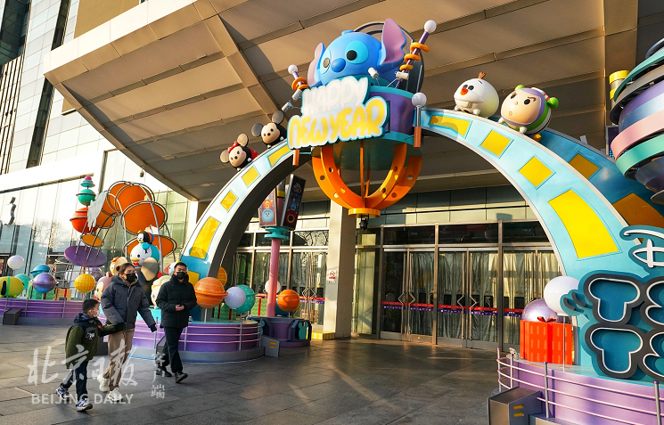 新年西单商圈装饰一新,冰雪冬奥童趣元素多