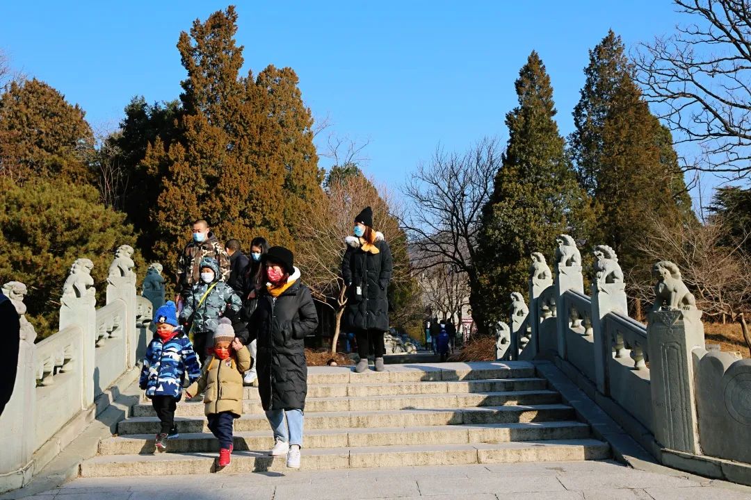 新年第一天,大家也都早早地来到香山公园内,在香山革命纪念地(旧址)内参与升旗仪式,登顶香炉峰进行新年祈福。游客在蔚蓝天空和朝阳的陪伴下,徜徉在公园内,感受着喜庆祥和的新年,温暖而美好。