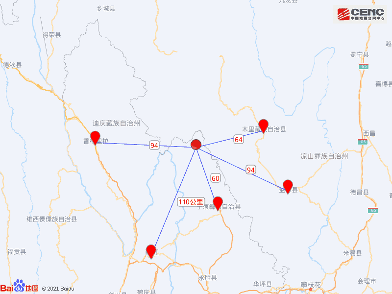 据了解,震中位置为丽江市宁蒗县永宁乡,在宁蒗县城西北方向,震中5公里范围内有拉瓦、上瓦都、火山、阿米瓦、嘎尔村、黑瓦罗、中瓦都、阿米罗、拉鲁瓦、永宁村等10个村庄,震中50公里范围内约有7.5万人。震中距宁蒗彝族自治县约60公里、距香格里拉市94公里、距丽江市112公里,距昆明市368公里。