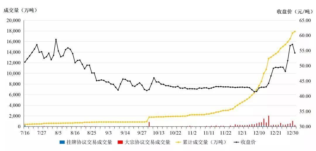 ▲全国碳市场成交量及成交价格情况(2021年7月16日—12月31日)