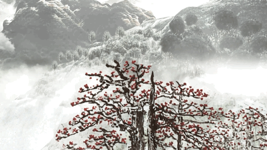 后侧重重的杂树郁郁葱葱,以翠绿点出初春新发的嫩芽,孕育着冬去春来的希望。