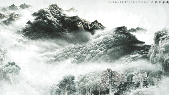 画家以气势恢宏的构图、苍茫厚朴的笔墨来塑造大国形象,以崇山峻岭、万木葱茏吟诵民族昌盛,这不禁让人联想起毛泽东的著名诗句“战士指看南粤,更加郁郁葱葱。”