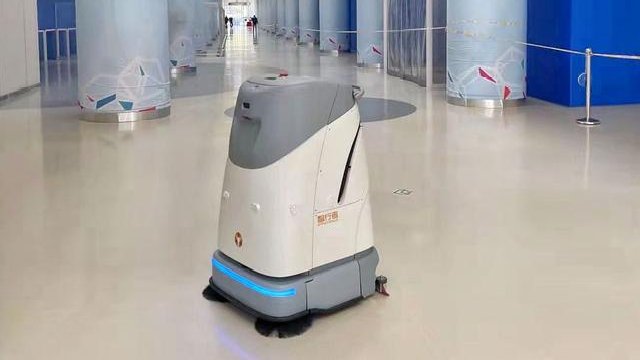我在冬奥会主媒体中心一层大厅就拍摄到一个智能机器人。当时它正在对一层大厅进行清扫与消毒工作,来之前我早就听闻了有关北京冬奥会智能机器人的新闻,因此立马被它吸引住,围绕着它进行了转圈拍摄。