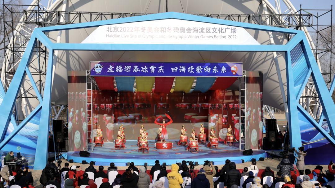 启动仪式现场,打击乐表演《龙腾虎跃》、歌舞《冰雪中国》、冬奥诗词朗诵《冰雪与火焰》、古筝齐奏《喜迎冬奥万家欢》、音乐快板《北京冬奥场馆赞》等节目精彩上演。