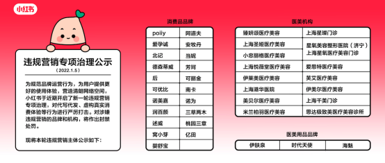 1月5日,小红书响应“清朗·打击流量造假、黑公关、网络水军”专项行动,小红书于近期启动了新一轮“虚假营销”治理专项,在首批封禁29个涉嫌违规营销的品牌后,平台进行第二批治理,39个涉嫌违规营销的消费品牌、医美机构和医美用品品牌被封禁。