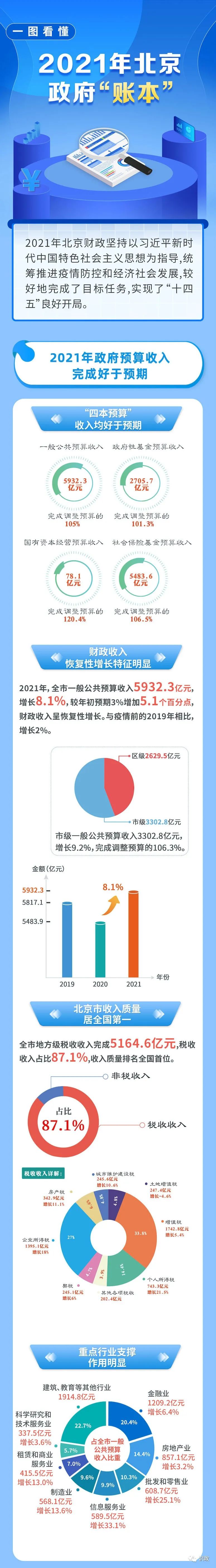 2021年,在全市共同努力下,全市一般公共预算收入完成5932.3亿元,增长8.1%,好于年初3%的预期,收入质量达到全国第一。