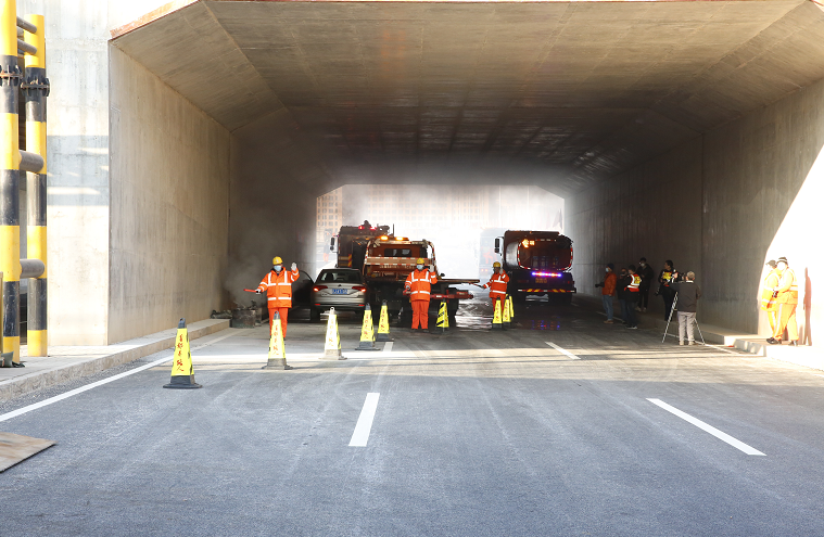 北京市城市道路养护管理中心(以下简称“城养中心”)介绍,北京冬奥会开幕在即,鸟巢体育馆、冰立方及冰丝带作为主场馆预计将吸引众多赛事爱好者前往,紧邻场馆的大屯路隧道、慧忠路隧道将成为重要交通干线。大屯路隧道全长1840米,设计时速60公里/小时,双向六车道,三个敞口段。慧忠路隧道全长1760米,设计速度50公里/小时,双向六车道,为全封闭隧道段。城市隧道由于距离长、内部相对封闭等特点,一旦发生火灾,若处置不及时,极有可能造成严重后果。