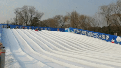 高6米、宽30米、长80米的雪山滑梯