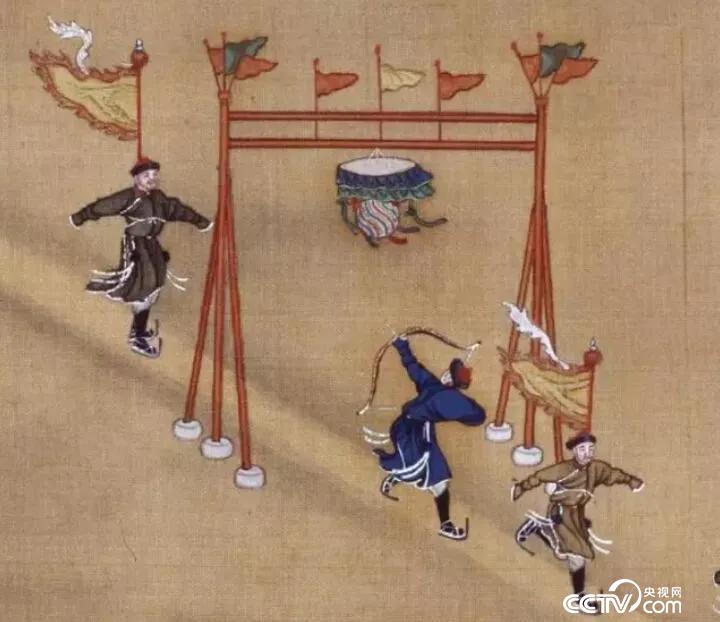 2.所谓冰上技巧,在古代的时候有一种项目叫做射天球或者转龙射球,就是在冰上“设旌门悬的演射”,巧妙地将射箭与滑冰结合到了一起。这个项目虽然是一种游戏,却也包含着浓浓的军事味道,乾隆说冰嬉是“冰嬉虽戏意诘武”也并非没有道理。