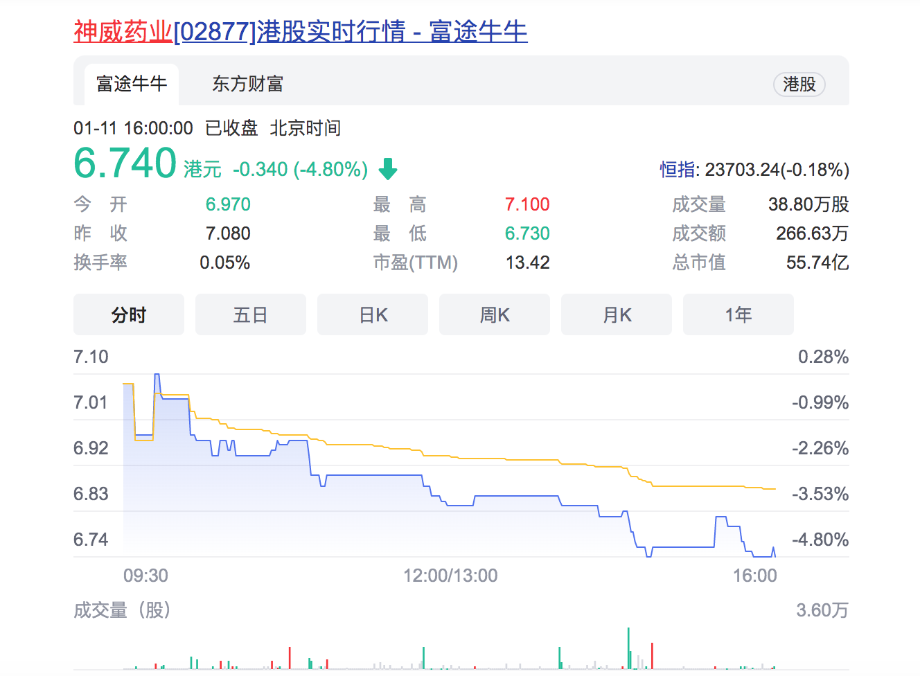 据国家药监局显示,持有莲必治注射液药品上市许可证的企业包括无锡济煜山禾药业股份有限公司,神威药业集团有限公司,江苏九旭药业有限公司。截至记者发稿,神威药业股价报6.74港元每股,股价下跌4.8%。
