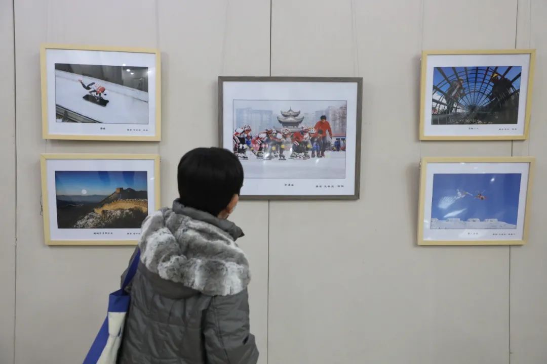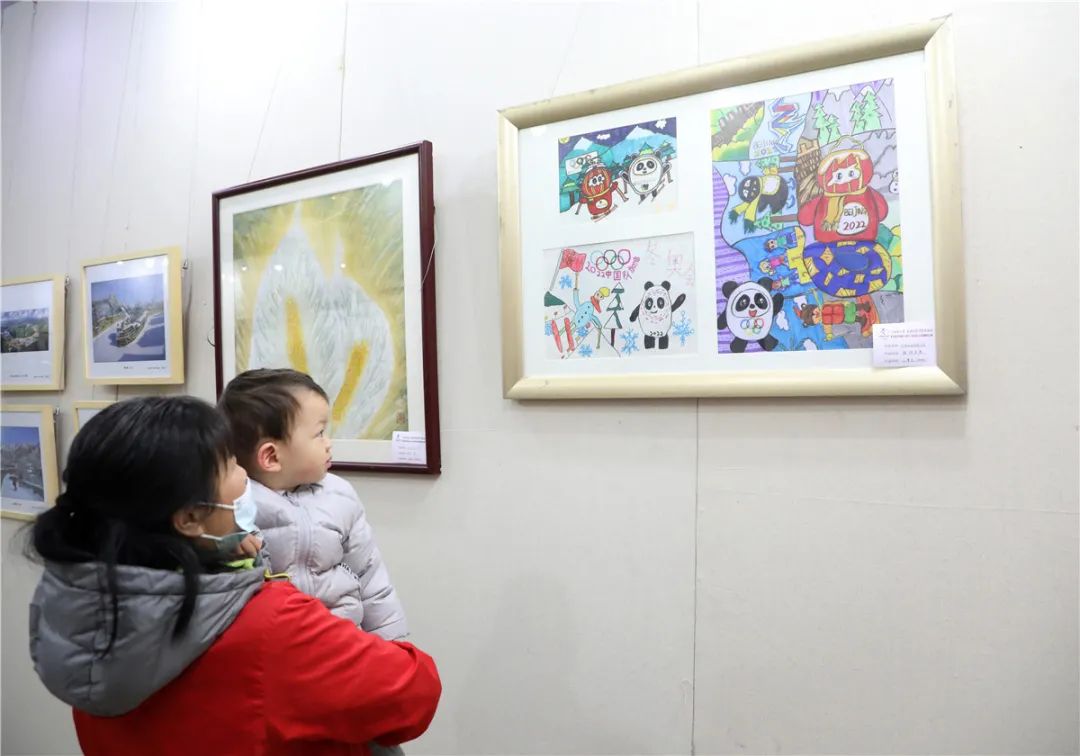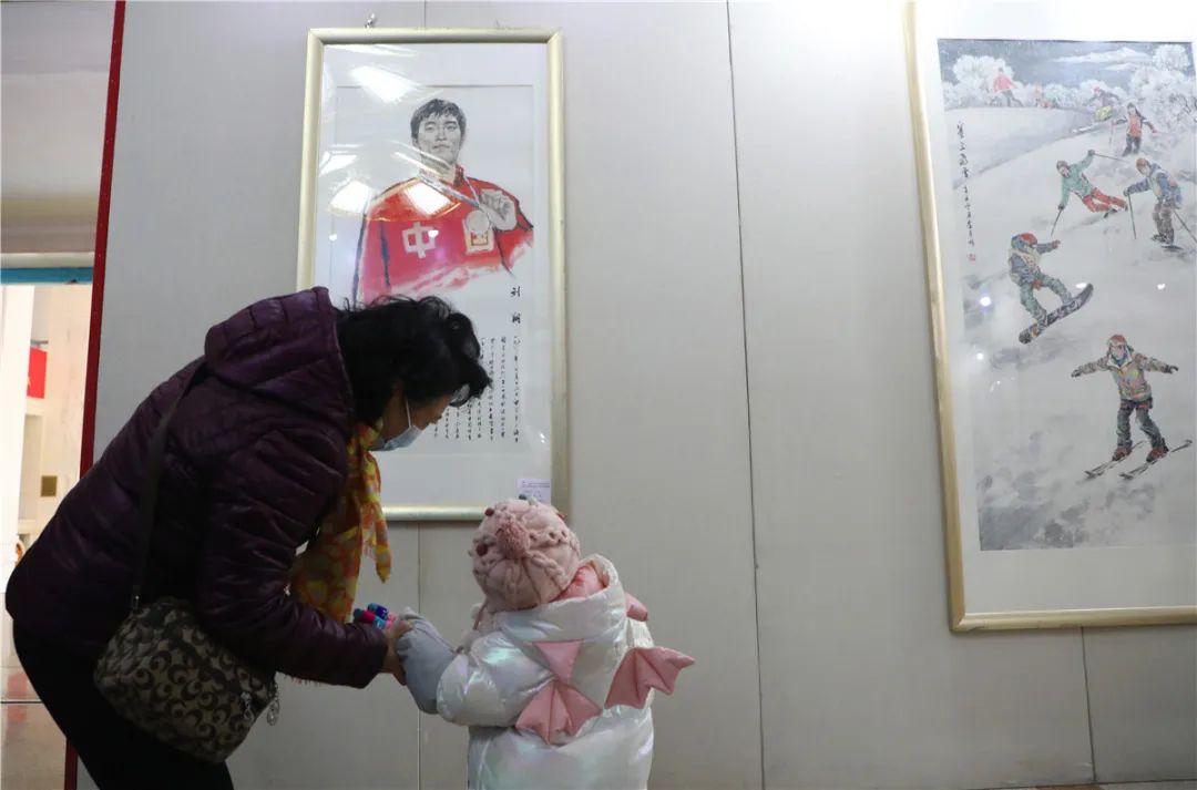 冰墩墩、雪容融、冰丝带、雪如意,一幅幅栩栩如生的水墨画把民族文化宫的展厅装点成“冰雪”的世界。苍劲有力的笔锋,浓墨书写“一起向未来”,更有五彩缤纷的照片,引得参观者流连忘返。