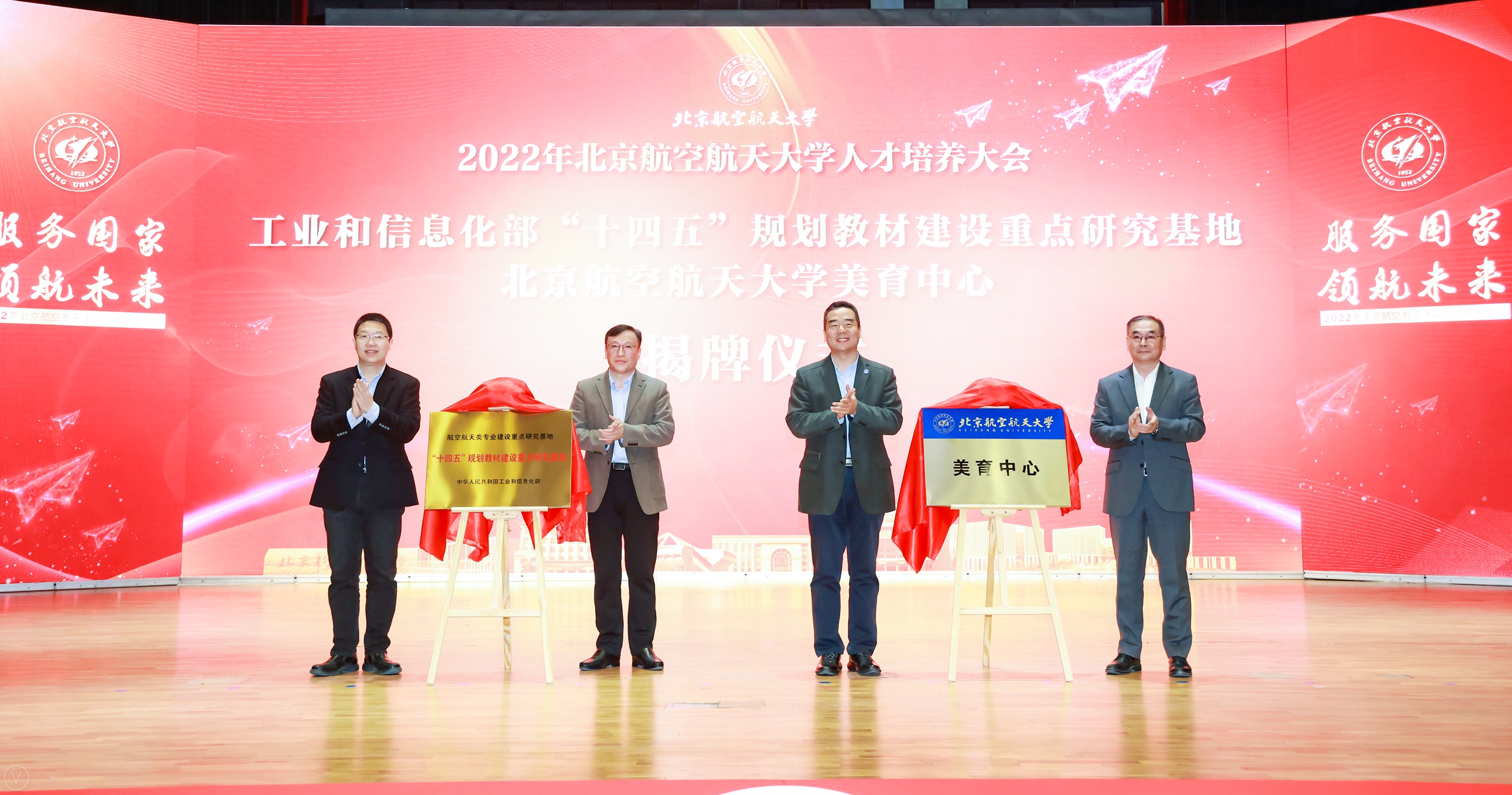 会上,北航美育中心正式揭牌,将承担全校美育课程规划、课程建设、课程实施、教学研究、教材出版、基地建设、师资建设、质量评价等工作,参与艺术社团指导等美育实践活动。