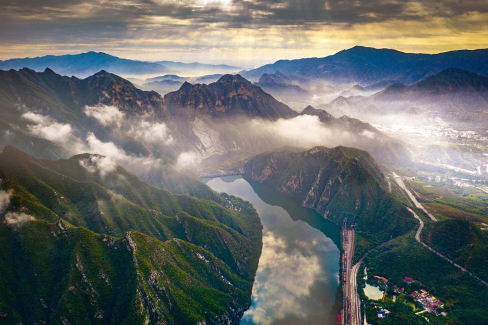 被镜头记录的还有数不尽的民生福祉,永定河畔郁郁葱葱,河水清澈明净;古村落被群山环绕,葱绿中是星星点点的新居;山路蜿蜒,通往幸福稳定的人居生活;规划纵横,穿越乡村与城市,逐渐融合协调。