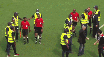 重新开赛后,西卡维泽继续“抢戏”,第87分钟,他向在中场蹬踏对手的马里球员出示红牌,可VAR提示,这应该是个黄牌动作。紧接着,89分40秒左右,西卡维泽再次提前吹响了比赛终场哨。这一次,落后一方的突尼斯队教练组立刻冲入场内讨要说法,但西卡泽维却拒绝让比赛继续进行,并在安保人员的保护下离场。