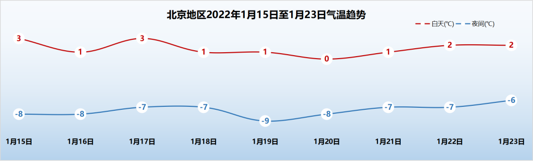 15日夜间:晴;偏北风4级转2级;平原地区最低气温-8℃,山区最低气温-13~-11℃。