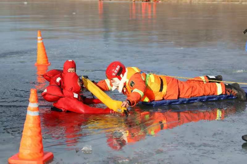 通过此次培训,提升了消防员冰上救援业务技能,为在极端严寒天气下能够有效救援和应急处置打下了基础。