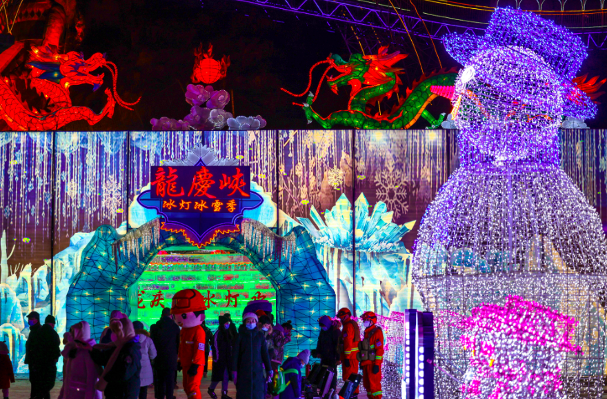 2022年北京龙庆峡冰灯冰雪季在龙庆峡文化广场开幕。