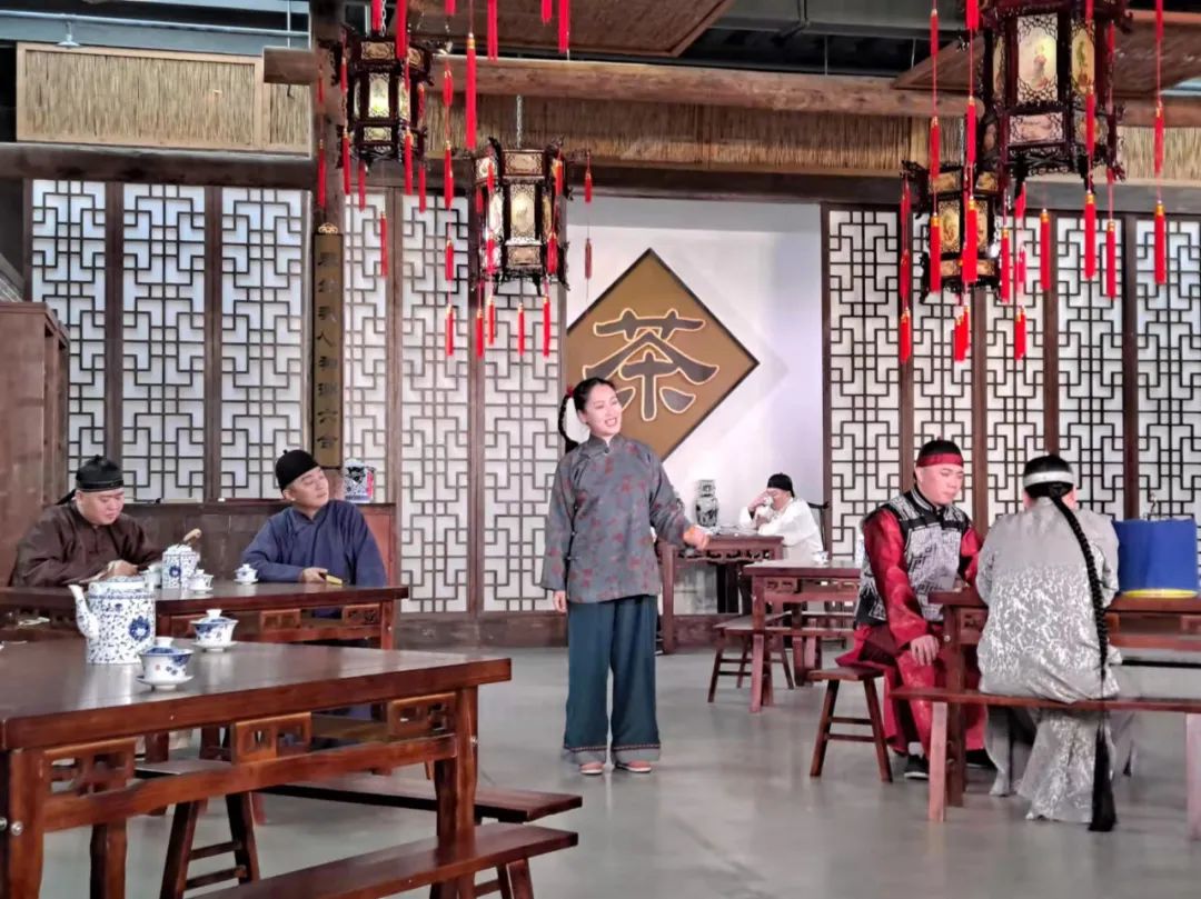 台湖演艺车间位于台湖演艺小镇鱼汇公园内,占地约30亩,建筑面积29000平方米,是北京市第一家成功引进北京曲剧浸没式驻场演出的剧场,固定演出曲目为《茶馆》《万籁清音八角鼓》等浸没式曲剧表演形式的剧目。