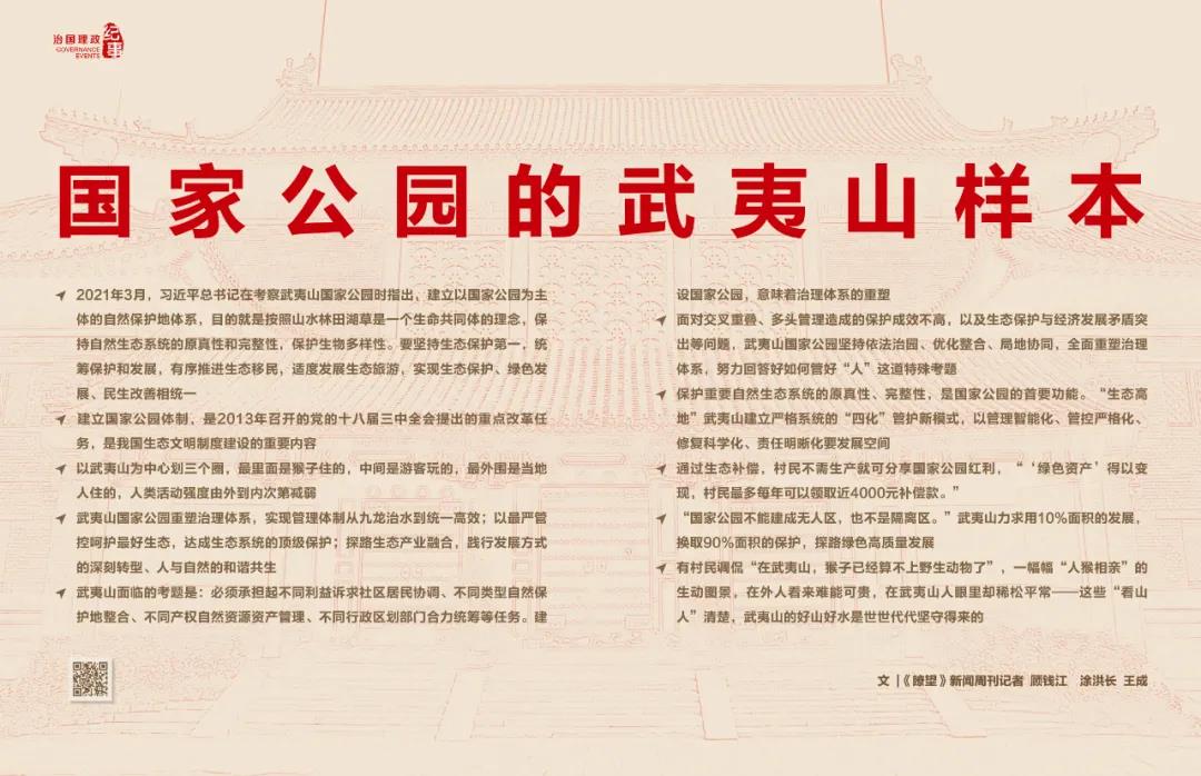 ◆ 武夷山国家公园重塑治理体系,实现管理体制从九龙治水到统一高效;以最严管控呵护最好生态,达成生态系统的顶级保护;探路生态产业融合,践行发展方式的深刻转型、人与自然的和谐共生
