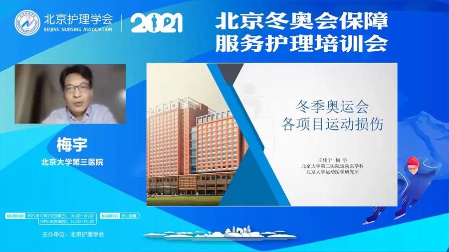2021年12月中旬,北京护理学会面向全市各级医疗机构护理管理人员、护士,举办北京冬奥会保障服务护理线上培训。培训聚焦奥运赛事期间传染病的识别与预防、突发应急事件的处理、各项目运动损伤急救转运及注意事项等内容,邀请来自朝阳医院、协和医院、北京大学第三医院、地坛医院等具备奥运医疗保障经验的专家授课,全市医疗机构1.8万余人次参与培训。