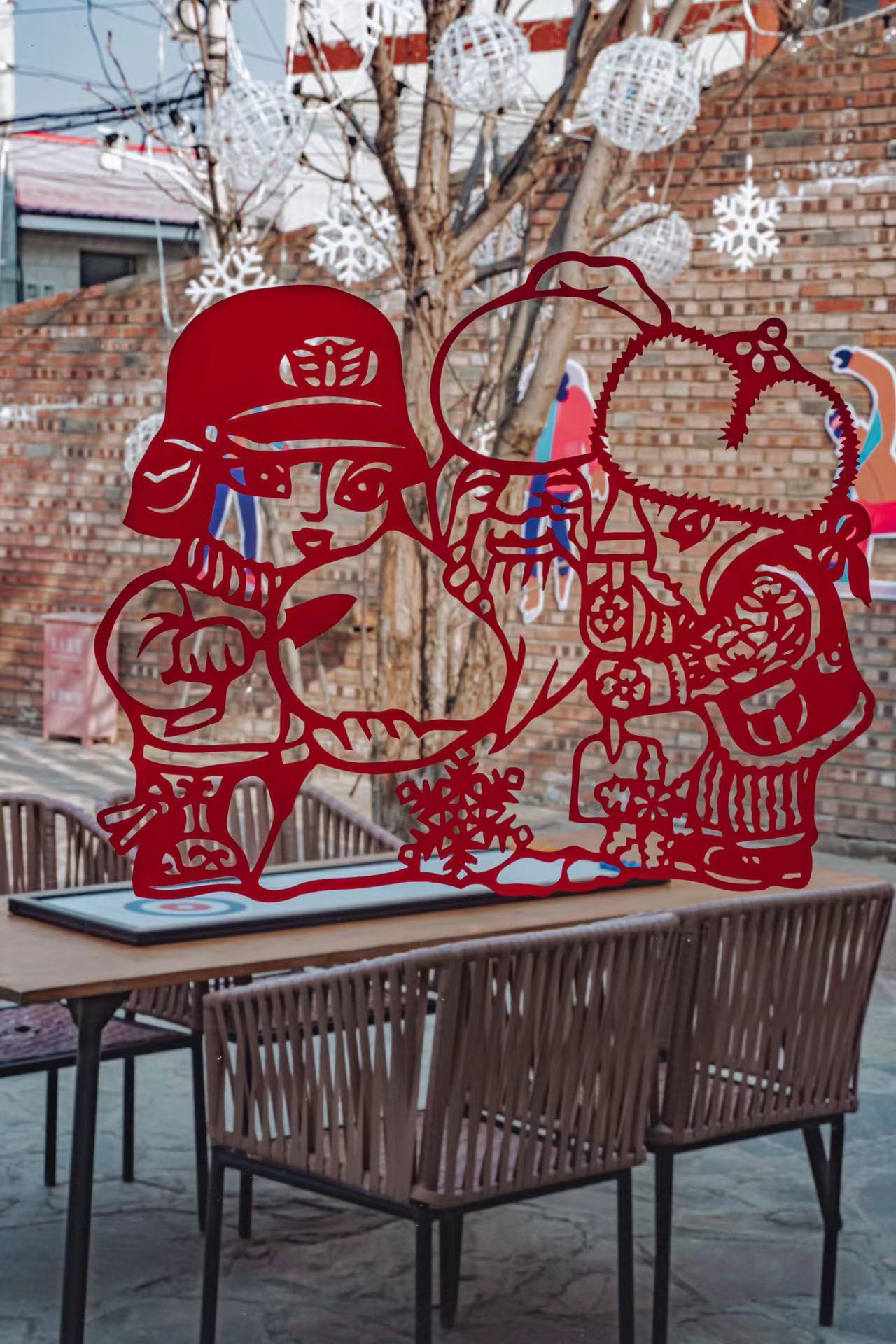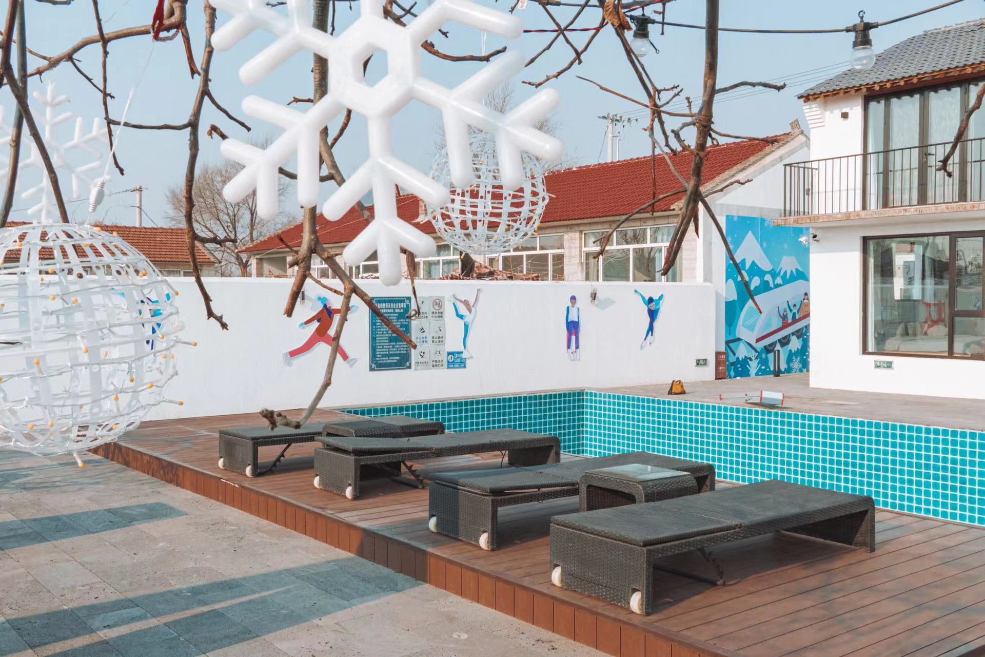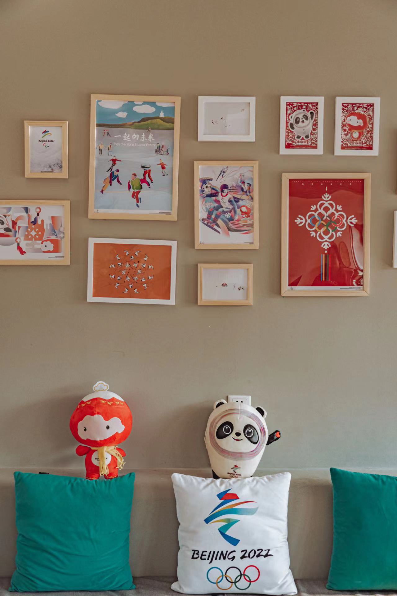 后黑龙庙村地处北京2022年冬奥会延庆赛区所在地张山营镇,这里距离赛场直线距离只有5公里。走进“冬奥人家”精品民宿2号院,率先映入眼帘的是一个长方形的室外泳池,对面是个独栋复式。走进其中,五米的挑高、随意摆放的懒人沙发、文艺的流苏挂毯,颇有北欧风格。屋内转转,随处可见冬奥元素,“冰墩墩”“雪容融”的玩偶抱枕、“冬梦”“飞跃”模样的剪纸窗花、模仿冬奥会开幕式的国旗串联景观,冰壶球桌游等,吸引入住小朋友们体验玩耍。
