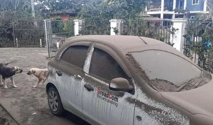 这是近日在汤加首都努库阿洛法拍摄的被火山灰覆盖的汽车。新华社发(马里安摄)